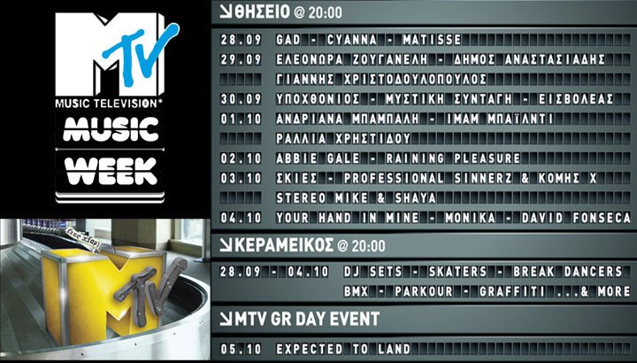 Your Hand in Mine are invited to participate in MTV's music week, a celebration for the first transmissions of the new channel in Greece...It was a mild autumn night near the Acropolis. This time sharing the stage with Monika and David Fonseca.